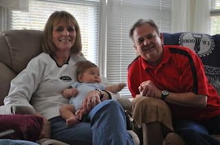 We had a great visit, but I couldn't help but laugh at how the night came to an end. At 9 pm on a Saturday night, Caleb and I were scarfing down some Bojangles. Wearing matching t-shirts. In a city I don't even know the name of. While the alarm on our car went off. While Gramme and Papa sat in the car with the baby. That's my kind of date night ; )